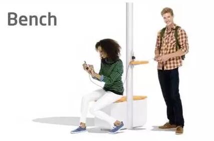 行人可以坐下休息,连接其提供的免费 wifi,或者利用 USB 接口给手机充充电。除此之外,它还有其他功能:检测空气质量、温度、湿度。